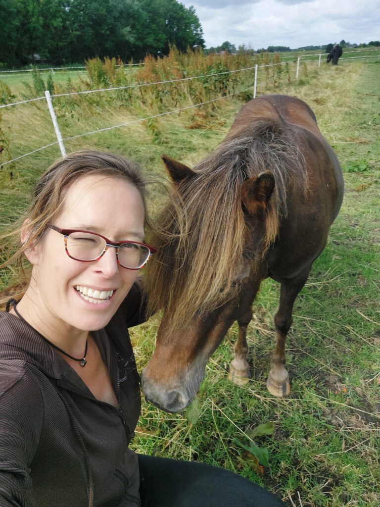 Amber is een Welsh merrie die sinds 2020 bij ons woont. Ze is samen met haar moeder Maan bij ons gebracht. Lees hier het verhaal over haar moeder Maan. De eerste 21 jaar van Ambers leven waren afschuwelijk. Helaas heb ik veel paardenleed gezien in mijn leven, maar het leed dat Amber is aangedaan spant in negatieve zin de kroon. Zij woonde bij een boer die haar stelselmatig, elke dag, seksueel, fysiek en emotioneel misbruikte en mishandelde. Gelukkig werd ze gered en bij ons gebracht. Doodsbang voor mensen was ze. Dit kon zich uiten in heftige agressie. Ik gunde het haar om vertrouwen te hebben in mensen. Ik ben met haar aan de slag gegaan, want voor mij is er niets meer belonend dan getraumatiseerde paarden trainen door middel van positieve bekrachtiging.